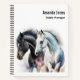 A personalized spiral notebook with a pair of black and white horses hanging out together. Illustrated with watercolors.