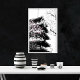 Black/White Japanese Pagoda w/ Cherry Blossoms Poster