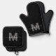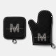 Black White Kitchen Name Monogram Oven Mitt & Pot Holder Set