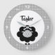 Black White Lamb Kawaii Kid Nursery Script Name Large Clock