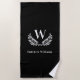 Black white laurel wreath name monogram beach towel