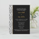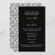 The Elegant White & Black Leaves Border Wedding Invitation is designed to coordinate with a black-tie wedding theme. It features an Aztek gold accent line that initiates a decorative botanical border on the left. Additionally, the names are highlighted in the same color. The black text field with white typeface contains the host's invitation, reason for celebration, date, time, and location. You can customize the text to reflect your wedding event. All parts allow for color adjustments, please refer to the edit link. For further wedding planning inspiration, please visit www.KBMD3signs.com. Should you have any custom design requests or require assistance, please contact us at info@KBMD3signs.com.