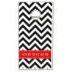 Black and White Large Chevron Zig Zag Pattern, Red Ribbon Name Monogram Label