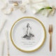 Black & White Lighthouse Nautical Sketch Wedding Paper Plates