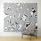 Minimal monochrome wavy strokes liquid painting pattern, featuring a collection of multiple wavy lines and circles uneven strokes of black and white fluid artsy design, on a white background. Stylish abstract art, great for minimalist decor.