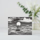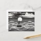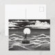Black & White Lonely Sailboat Moon Waves Postcard
