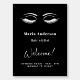 Classic, modern elegant black background. Personalize and add your name, title, opening hours. White text. Decorated with a pair of eyes/lashes.