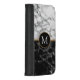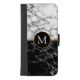 Personalized Letter iPhone Wallet Cases with Black and White Marble Stone - Add Your Letter / Logo / Year / Number / More