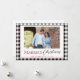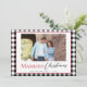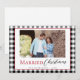 Send personalized holiday wishes with this modern black and white plaid, modern rustic, "Married Christmas" card, featuring a customizable photo. The card includes a blank backside, allowing space for handwritten notes, making it a thoughtful and stylish way to connect with family and friends during the holiday season. Send out your first holiday card as newlyweds.