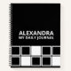 Black white llegant personalized geometric squared daily journal with your name in modern bold typography.