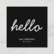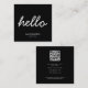 A black and white business card with clean and simple accents. Introduce yourself with this "hello" business card. A simple and professional way to introduce your business. Social media handle and QR code included in the design of this business card for you to use. Personalize your details to create your own unique business card.