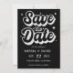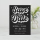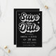 A modern Save the Date featuring a bold, casual script in black on clean white. this announcement personal and fun wedding card is Perfect for a relaxed, contemporary wedding.