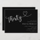 Plain white envelopes are included with paper invitations and will come to fit the invitation size you select. If you don’t need the envelopes, you may choose to not receive them by selecting the dropdown below "Envelopes" and choosing "None." If you’d like to have a design on your envelopes, you can browse all of these available envelopes to find the design that complements your Black White Minimalist Script 30th Birthday Invitation.