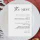 Set a timeless tone at your reception with this elegant black and white wedding menu card, featuring a minimalist layout with chic script and serif typography. Perfect for modern, formal, or black-tie weddings, this clean design presents your courses in a classy, easy to read format. Fully customizable with your names, date, and meal selections, it’s a stylish way to elevate your table setting. Pairs beautifully with neutral, monochrome, or classic wedding themes.