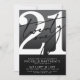 Gray and Black 21st Birthday Party Invitation. Celebrate turning twenty-one in style with this bold and chic design. The top half features a large white “21” with a sassy handwritten black script “Cheers” layered over it, standing out against a sleek black gradient over a subtle gray background for an overall black-and-white look. The bottom portion is solid black with party details in a clean sans serif white font for a modern and striking effect. Colors for the fonts and background can be customized to fit your theme.