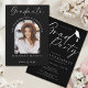 Proudly celebrate your graduate’s incredible achievement with this elegant black and white photo graduation party invitation. This stylish invite features a chic black background, beautiful script lettering, and a customizable photo of your graduate. Perfect for announcing your child’s graduation and inviting family and friends to a heartfelt celebration. A timeless and stylish choice for honoring your child’s big milestone and making the day truly special! Personalize with the graduate’s name, degree, university, event details, and RSVP information. If you need assistance, feel free to message me—I’d love to help!