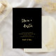 Modern minimalist wedding invitation cards feature handwritten script and stylish sans serif font party details in real foil gold and black background, simple and elegant. Great for modern classic wedding, simple formal wedding, elegant minimalist wedding.