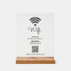 Share your wifi password with this modern acrylic sign for your guests or customers. This design features a cute wifi graphic with a heart and custom text. You can personalize the text and add your QR code or logo. This sign will be a nice addition to your business places like cafes, restrants, hotels, offices, or etc.