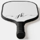 Modern personalized custom color pickleball paddle featuring a monogram shown in an editable stylish script name initials. For different paddle options, choose from Black, Tan or White edging and grip colors on the ordering page. Easy to customize. Get yours today!