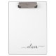 Black White Modern Script Girly Monogram Name Clipboard