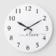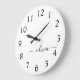 Black White Modern Script Girly Monogram Name Large Clock