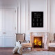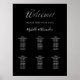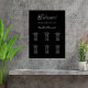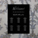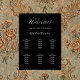 A classic black background. Personalize and add the name of the bride and groom, add your guests names. White text.