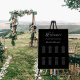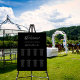 A classic black background. Personalize and add the name of the bride and groom, add your guests names. White text.