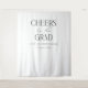 Create an elegant and trendy photo backdrop for your graduation party. Design features "Cheers to the Grad" in modern elegant typography. Shown in black and white, but all colors are editable by you. Personalize the template to add your graduate's name and year. © Kimbellished, LLC