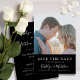 Elegant Black Modern Typography Minimalist Photo Wedding Save The Date Invitation Card. Let your family, friends and colleagues know that you have set a date for your wedding celebration with this elegant, stylish and modern wedding save the date invitation card. All the texts are pre-arranged for you to personalize easily and quickly with your own details.