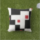 Black White with a touch of Red Modern Vintage Patchwork Throw Pillow adds pizazz to couch, chair, bed, and/or outdoor furniture. A modern quilt look with faux gray stitching. Look for coordinating products in the Modern Vintage Patchwork Collection.