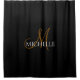 elegant black monogram name white script shower curtain ,Add a refined, modern touch to your bathroom with this elegant black monogram name shower curtain featuring a stunning white script design. The deep black background creates a bold, sophisticated canvas, while the flowing white script adds a soft, graceful contrast that instantly elevates your space.