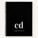 Black white monogram initials modern notebook