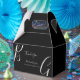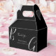 This design features the bride's and groom's initials as the main focus of the design. Personalized initials using script font typography creates a perfect fusion of modern and elegance. A simple custom minimalist wedding favor box design with modern, black, white and gray monogram. Matching wedding invitations and other stationery items are also available. To re-position the initials please click "Click to customize further" link when personalizing details.