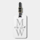 Create Your Own Stylish Modern Custom World Traveler Vertical Monogram Name Luggage Tag. This clean and modern luggage tag brings a personalized touch to any trip, perfect for anyone who loves to travel with style. The front features a soft gray two-letter serif monogram using the first and last initials, stacked vertically with your full name in black handwritten script centered between them. The white background keeps the look fresh, minimal, and versatile for both men and women.