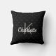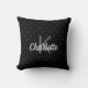 Personalize and add your first name and family monogram letters, initials. The monogram initials as a pattern on the background. The name is written with a modern hand lettered style script. A classic chic black background color. Text in white and gray.