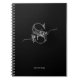 Black, white, and gray custom printed monogram notebook with a rustic sketch style initial and chic elegant script font layered on top with elegant swshes on each side of the custom text. Add your notebook title or subject and click 'customize' to change the background colors or fonts.