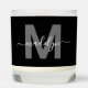 Create Your Own Stylish Modern Custom Girly Black and White Name Monogram Candle. This chic clear glass scented candle features a bold black band wrapped around the outside, with your custom monogram displayed on two sides. A gray initial is paired with your name in elegant white script for a clean and modern black and white look. All colors can be customized to match your style. Perfect as a party favor, bridal or baby shower favor, bridal party gift to or from the bride, a just because gift, or a cute little stocking stuffer. A sweet and stylish way to make any occasion feel a little more special.