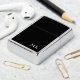 Modern Black White Monogram Suitcases. Beautiful design featuring white double initial monogram text on black. Personalize with your own text. Would make an excellent gift for birthdays, holidays, graduations, promotions, any special occasion, or everyday.