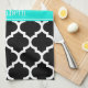 Black White Moroccan #5 Brt Aqua Name Monogram Kitchen Towel