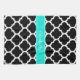 Black and White Moroccan Quatrefoil Trellis Pattern #5, Bright Aqua Ribbon Name Monogram Label ==========