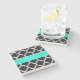 Black White Moroccan #5 Brt Aqua Name Monogram Stone Coaster