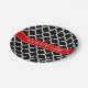 Black White Moroccan #5 Red Name Monogram Paper Plates