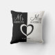 Black white Mr Mrs name heart wedding Throw Pillow