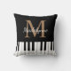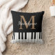 Black White Music Theme Piano Keyboard Monogram Throw Pillow