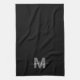 Personalized Custom Create Your Own Black White Initial Name Monogram Kitchen Towel. Add a touch of elegance to your kitchen with this stylish monogrammed towel. Designed for a tri-fold style, it features a bold gray initial and a flowing white script name, offering a personalized and sophisticated look. Perfect for everyday use or as a decorative accent, this towel makes a thoughtful and practical gift. Whether for housewarmings, holidays, birthdays, or even as a wedding gift when customized with a last name, it’s a versatile keepsake. Functional and chic, this monogrammed kitchen towel adds a touch of charm to any home.