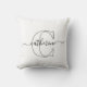 Black White Name Monogram Modern Script Minimalist Throw Pillow