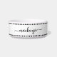 Create Your Own Personalized Black and White Name Pet Bowl. This stylish white pet bowl features black polka dot lines along the top and bottom for a fun and modern touch. The center showcases your pet’s name in black script—simple, clean, and personal. Designed to work for a dog, cat, or any beloved pet, this custom bowl adds a cute and chic element to your pet’s space. All colors can be changed to match your pet’s style or your home decor!