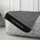 Rustic chic sherpa blanket features an intricate pattern inspired by Nordic knit sweaters, in classic black and white. Personalize with a name or family name along the bottom.