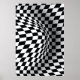Black white op art optical illusion abstract custom print/poster, featuring a geometric B&W optical illusion checker pattern of squares, rectangles and lozenges that looks stretched.