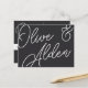 Designed to match our Black & White Oversized Script wedding invitations, this elegant typography based RSVP postcard is perfect for traditional mail-in RSVPs. Personalize with your desired RSVP date and custom accept and decline wording in classic serif lettering. Our Ash colorway makes a classic statement with crisp white lettering on a soft black background.